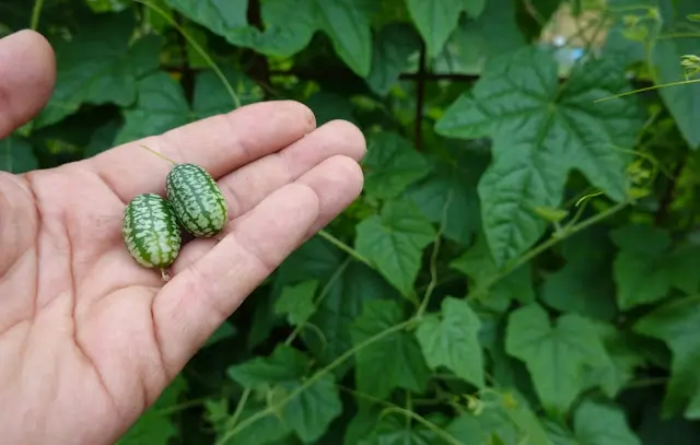 Ο λόγος για το Melothria scabra, κοινώς γνωστό ως cucamelon, δηλαδή το μεξικάνικο καρπούζι μινιατούρα που έχει ιδιαίτερο σχήμα και γεύση. Πρόκειται για ένα είδος ανθοφόρου φυτού της οικογένειας των κολοκυθιών που καλλιεργείται για τον βρώσιμο καρπό του και το απολαμβάνουν πολύ στην λατινική Αμερική.