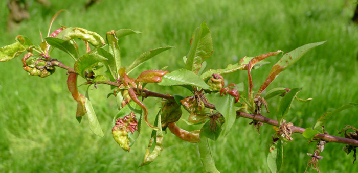 Οι πρωτογενείς μολύνσεις από τον εξώασκο ροδακινιάς συμβαίνουν κατά το στάδιο της έκπτυξης των νεαρών φύλλων (από στάδιο Β έως C).
