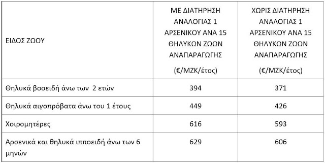 • τον αριθμό των ζώων (αρσενικών και θηλυκών ζώων)