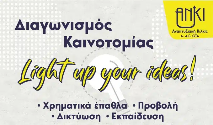 Ο διαγωνισμός «Light up your ideas!» αποτελεί μια μοναδική ευκαιρία για νέους, επιστήμονες και επιχειρηματίες του Κιλκίς να ξεχωρίσουν, να δικτυωθούν και να αναδείξουν τις ιδέες τους στην εθνική και ευρωπαϊκή σκηνή.