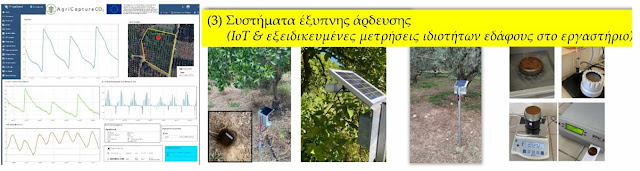 Οπότε η εγκατάσταση του παραπάνω ευφυούς συστήματος άρδευσης συνοδεύεται από την παροχή υπηρεσίας προσδιορισμού των κρίσιμων υδραυλικών ιδιοτήτων των εδαφών, που πραγματοποιείται στο Εργαστήριο Υδατικών Πόρων, Αρδεύσεων και Περιβ/ντικής Γεωπληροφορικής του ΙΕΛΥΑ.