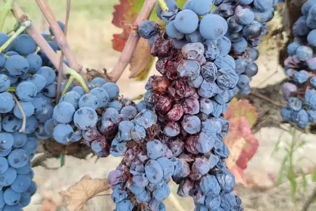 Η προσβολή αφορά και υγιείς βότρεις (με επιφανειακές διαβρώσεις στους μίσχους) διαταράσσοντας έτσι το αγγειακό σύστημα με αποτέλεσμα την ξήρανση της ράγας.