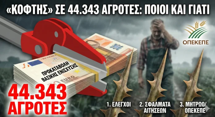 Τον λόγο για τον οποίο η προκαταβολή της Βασικής Ενίσχυσης περιορίστηκε φέτος στα 363 εκατομμύρια ευρώ (έναντι 476 εκατ. πέρυσι), αφήνοντας εκτός πληρωμής χιλιάδες παραγωγούς, εξήγησε η ηγεσία του Υπουργείου Αγροτικής Ανάπτυξης και της ΑΑΔΕ. Όπως ανακοινώθηκε, 44.343 ΑΦΜ αγροτών τέθηκαν σε καθεστώς «διερεύνησης» ή αποκλείστηκαν πλήρως, καθώς οι νέοι, αυστηροί διασταυρωτικοί έλεγχοι εντόπισαν σοβαρές ασυμφωνίες.