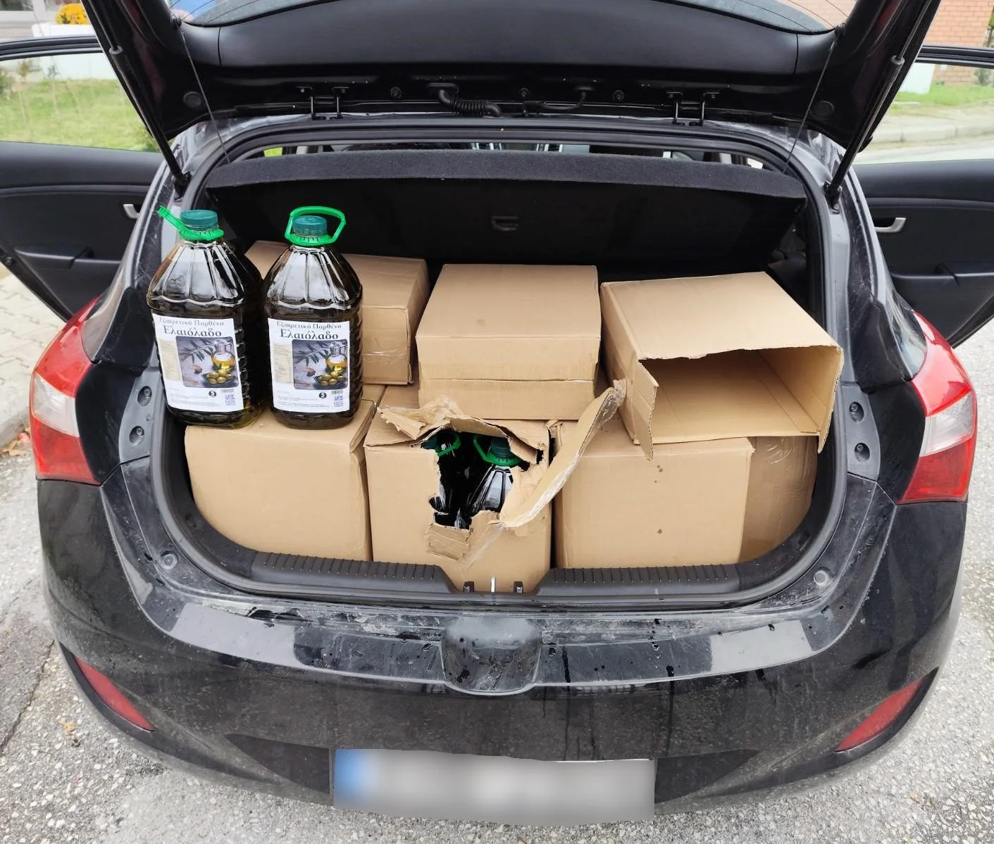 Κατά τη διάρκεια του ελέγχου στο αυτοκίνητο του 38χρονου, οι αρχές βρέθηκαν μπροστά σε δεκάδες δοχεία με λάδι αγνώστου προελεύσεως. Συγκεκριμένα, βρέθηκαν και κατασχέθηκαν:
