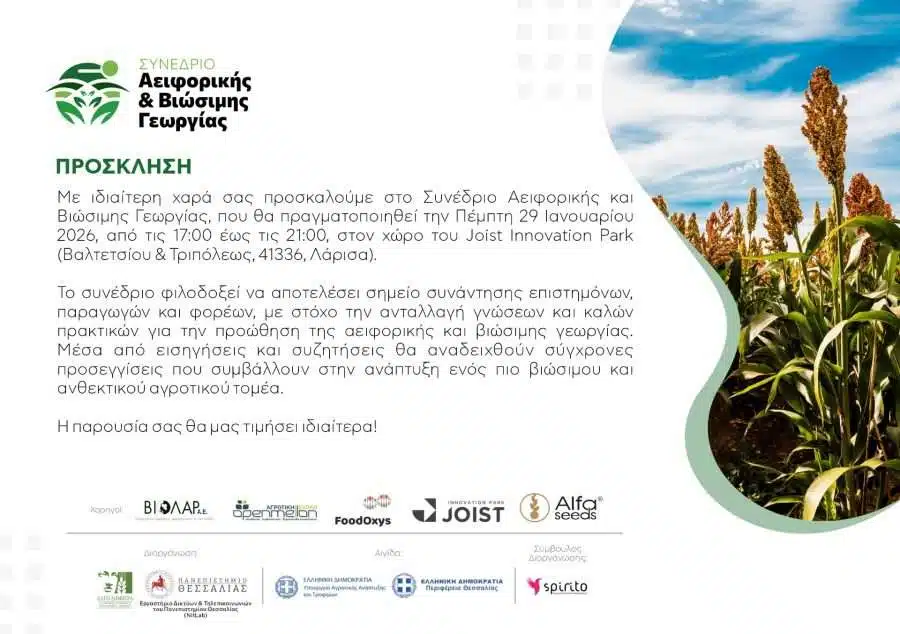 Την Πέμπτη 29 Ιανουαρίου στον πολυχώρο JOIST. Ένα συνέδριο για την καινοτομία, την ανθεκτικότητα και τις νέες καλλιέργειες που υπόσχονται εισόδημα.