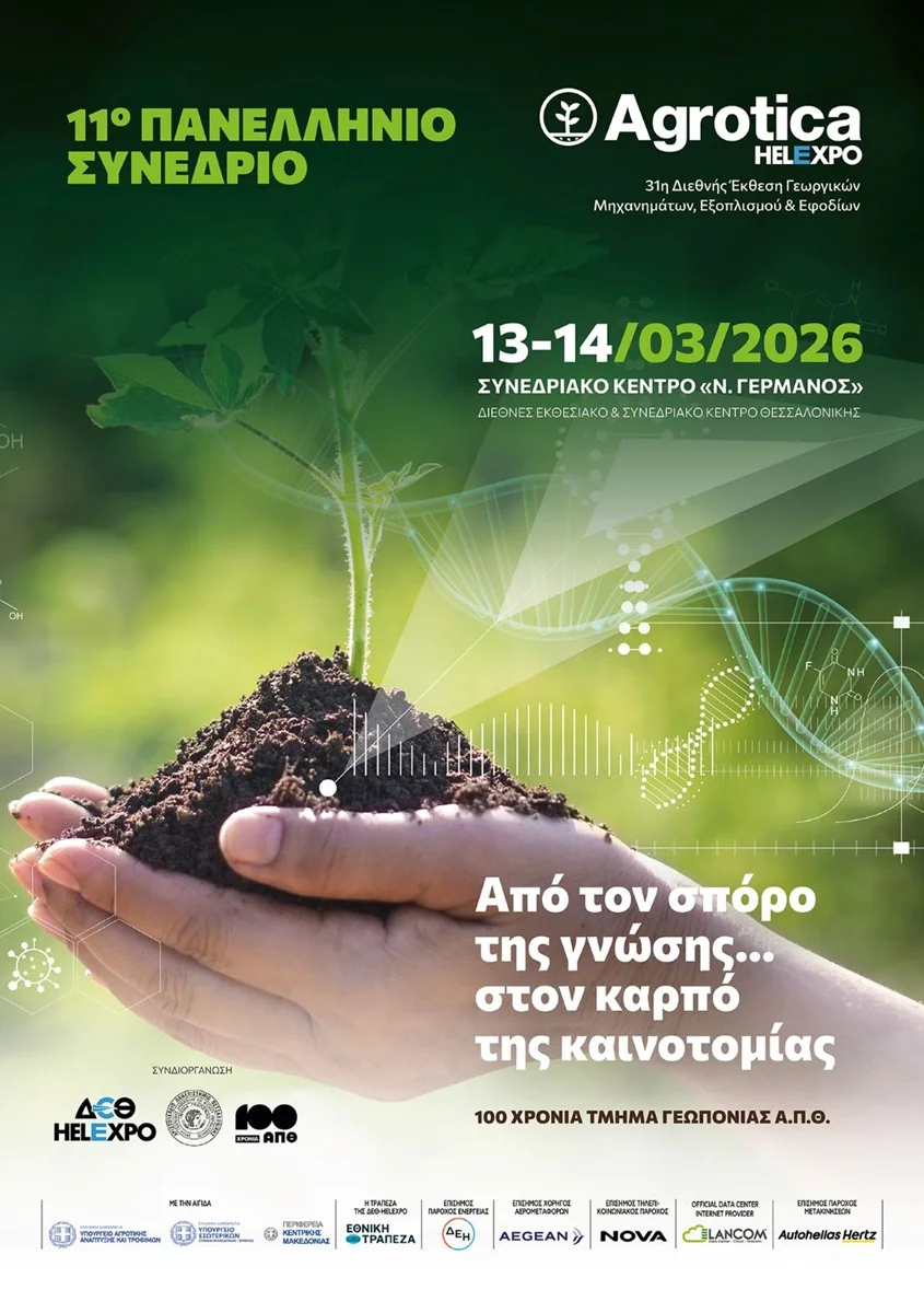 Με τίτλο «Από τον Σπόρο της Γνώσης στον Καρπό της Καινοτομίας – 100 Χρόνια Τμήμα Γεωπονίας ΑΠΘ», το 11ο Πανελλήνιο Συνέδριο του Τμήματος έρχεται να αποτελέσει τον κεντρικό επιστημονικό πυρήνα της 31ης Διεθνούς Έκθεσης «Agrotica». Το συνέδριο, που διοργανώνεται σε στενή συνεργασία με τη ΔΕΘ-HELEXPO, θα διεξαχθεί στις 13 και 14 Μαρτίου 2026, στο Συνεδριακό Κέντρο «Ν. Γερμανός» (Περίπτερο 8, 2ος όροφος).