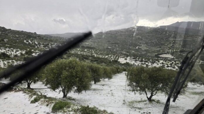 Κρήτη: Σφοδρή χαλαζόπτωση στο Μεραμβέλλο με έντονα φαινόμενα